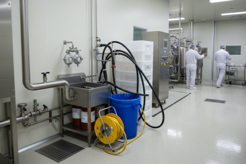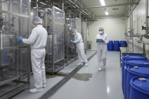 핵심 리스크 : 교차오염, 세척 밸리데이션 미흡, 작업자 세안·보호구 의무 불이행, 수막에 따른 미끄럼·화학물 노출 사고